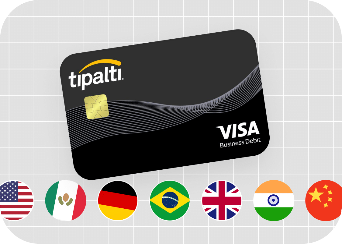 The Tipalti Visa® Card goes anywhere you do, using the Visa network, which protects your payments abroad, and is welcomed at millions of locations in over 200 countries and territories worldwide.
