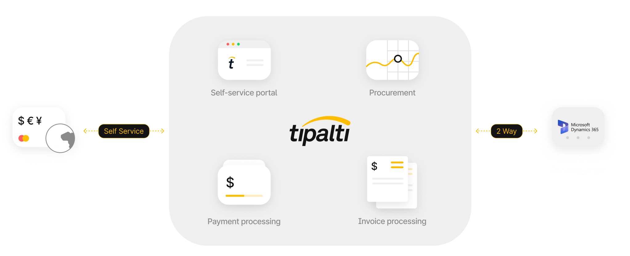 We help Microsoft Dynamics 365 Business Central and Great Plains users streamline AP automation, accelerate global payouts, simplify procurement processes, and optimise employee expenses, all through one integrated platform. Versions we support include Microsoft Dynamics 365 Business Central, Great Plains, NAV, and Finance and Operations.